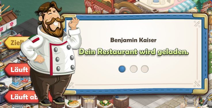 Wenn ihr einen langsamen Rechner habt, die Internet-Verbindung vielleicht nur mobil über einen Stick erfolgt, dann seht ihr sehr lange auf den Wartebildschirm und die drei laufenden und oft stehenden Punkte als Anzeige für die Datenübertragung. Ohne rasente Anbindung wird so aus ChefVille leider WaitVille.