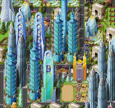 Nach einer gewissen Spiel, wirst Du Deine Innenstadt mit zahlreichen Skyscrapern der verschiedenen Art bestückt haben, dort wo viele Geschäfte sind.