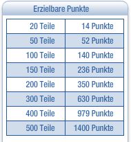 Anfänger können mit einem Motiv beginnen, das 20 Teile umfasst. Dafür gibt es jedoch in der Highscoreliste nur 14 Punkte. Seid ihr bereit ein großes Puzzle zu meistern, dann erhaltet ihr viel mehr Punkte, z.B. bei 500 Teilen 1.400 Punte.