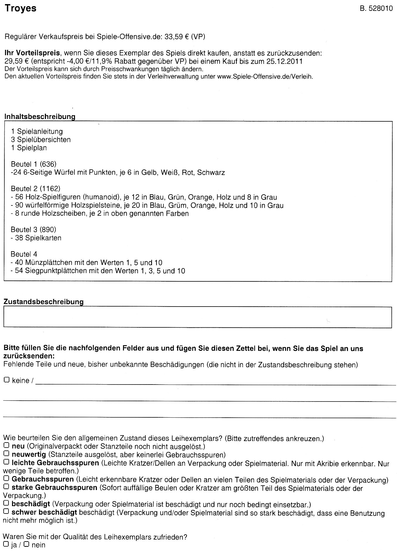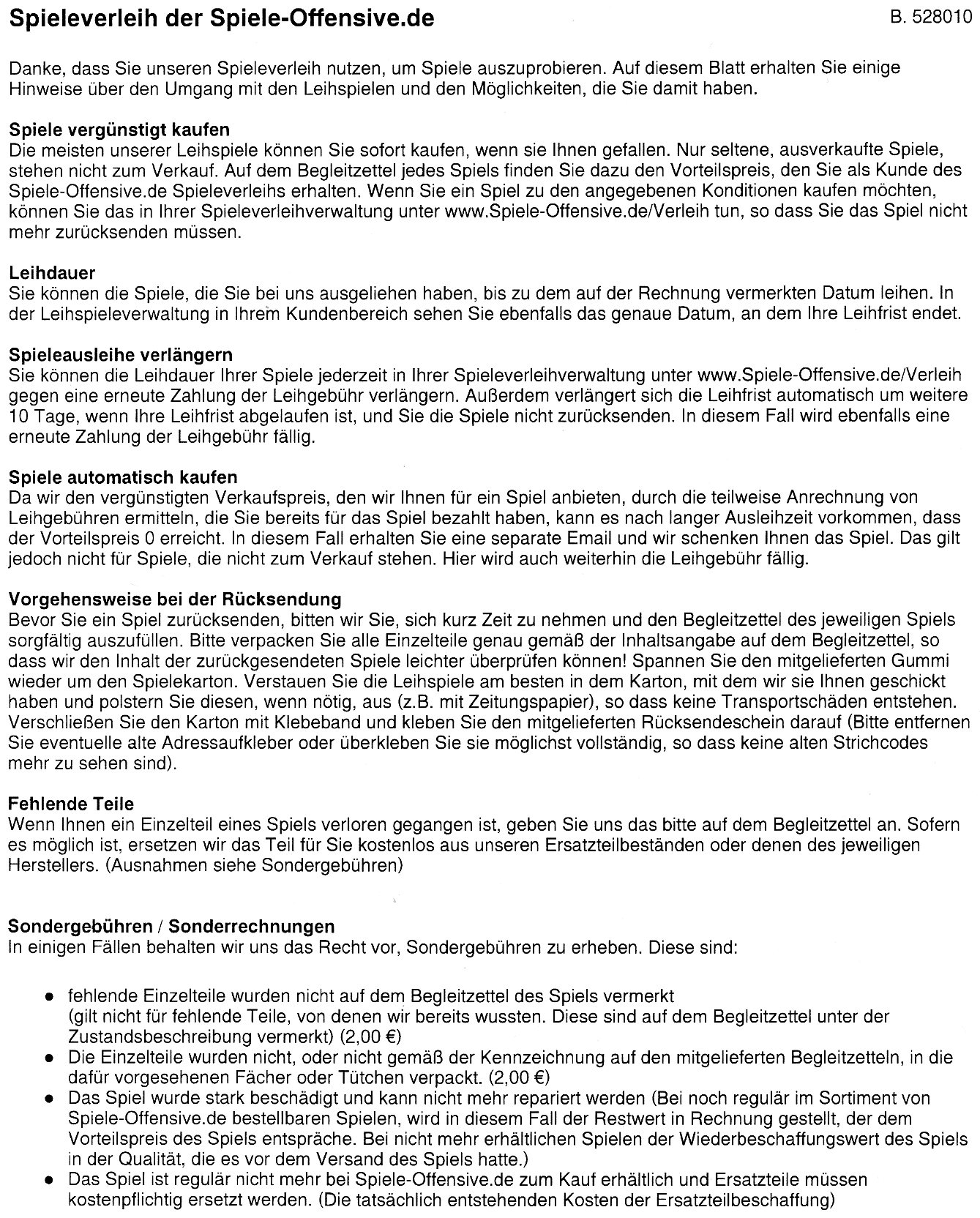 Ja, das mit den gebühren weiß ich, aber falls man das Spiel kaufen will, werden die dann direkt verrechnet oder? Wann muss man das Spiel dann genau zurückschicken? An Tag 10 nachdem man es erhalten hat zur Post bringen nehme ich an?! Was passiert, wenn man es z.B. 3 Tage länger behält?Saukerer hat geschrieben:Das selbe hab ich mir beim Thunderstone: Drachenturm gedacht bei 18€. Mein Einstieg in die Thunderstone Welt. Bin mal gespannt.