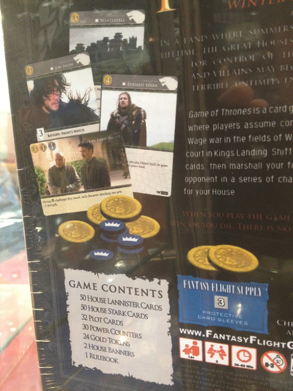 Auch wenn es eines - wenn nicht DAS - beste Mehrspieler LCG/CCG sein soll - zu zweit ist es eine absolute Katastrophe. Muss sich auch FFG gedacht haben. In Zusammenarbeit mit HBO (also dem Fernsehsender der die Serie produziert) wird FFG eine Standalone also "Allein"-spielbare Erweiterung zu GoT herausbringen - die, wer hätte es gedacht, für ausschließlich zwei Spieler konzipiert ist. Ich mutmaße ebenso, dass die Bebilderung aus der Serie stammen wird und nicht, wie gehabt ,gezeichnet ist.