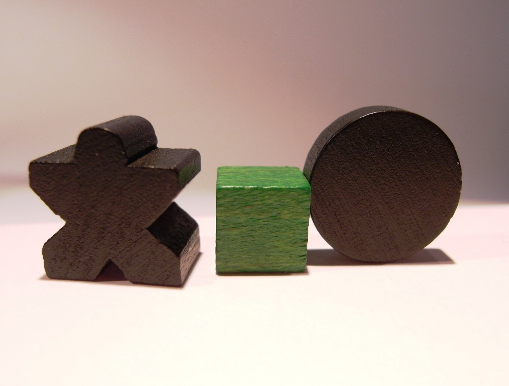 im Rahmen einer Spieleverleih-Aktion sind die folgenden Spielsteine übrig geblieben. Ich weiß die Teile keinem Spiel zuzuordnen. Aber wegen der speziellen Meepleform könnt Ihr mir vielleicht Tipps geben, wo ich im Regal hingreifen soll.