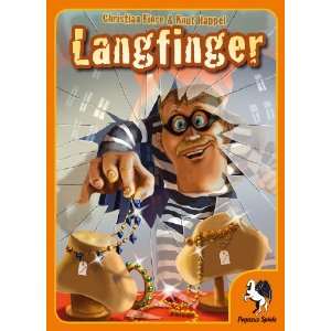 Langfinger kam bei uns jetzt schon ein paarmal auf den Tisch und ist wirklich ein nettes kleines Spiel. Ich spiele es immer wieder gerne, da es aber viele Spiele gibt die ganz "nett" sind, wird es bei uns auch nicht zum Dauerbrenner werden. Etwas zu glückslästig sind die Beutekarten, ich finde die Geldkarten lohnen sich garnicht und die Beutekarten die beim Hehler "verkauft" werden müssen sind im Wert auch zu unterschiedlich!