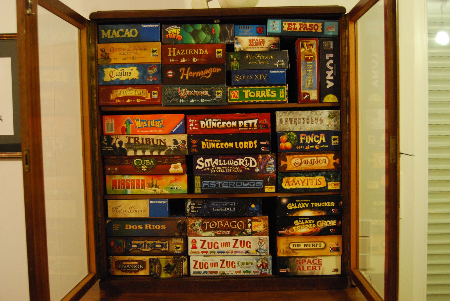 in beiden sind einige, die oft auf den Tisch kommen. Und in beiden sind diejenigen, die noch immerhin manchmal gespielt werden. In den anderen (ohne Bild) sind eigentlich "nur" noch ältere oder etwas schwächere Spiele (wenn man mal von der Carcassonne-Familie absieht) drin.