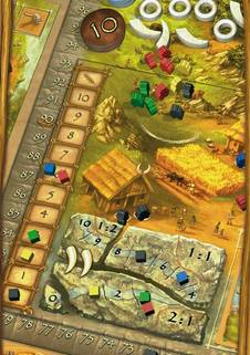Schmuck bekommt man übrigens beim Jagen. Man kann seine Würfelaugen dann beliebig auf Nahrung und Schmuck aufteilen.